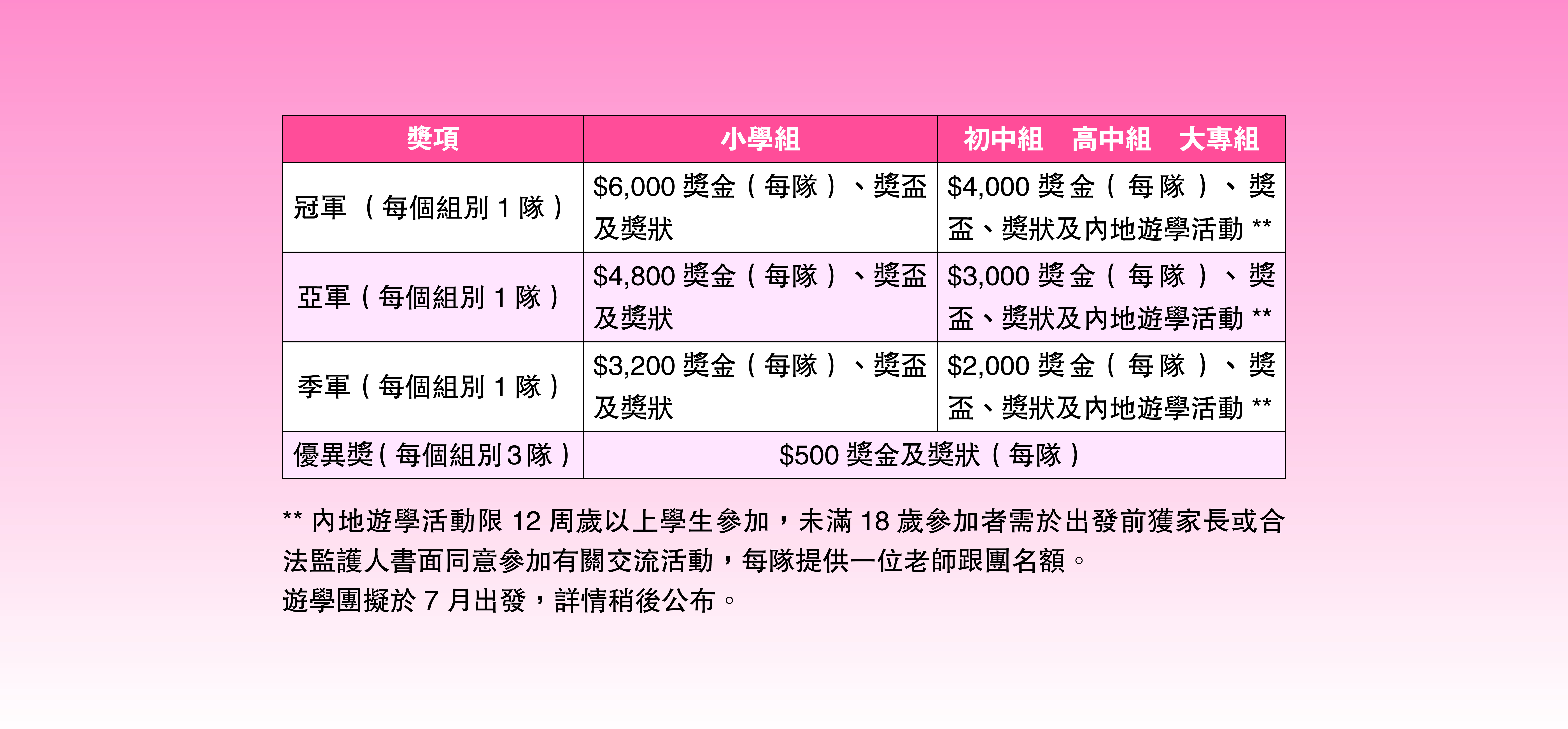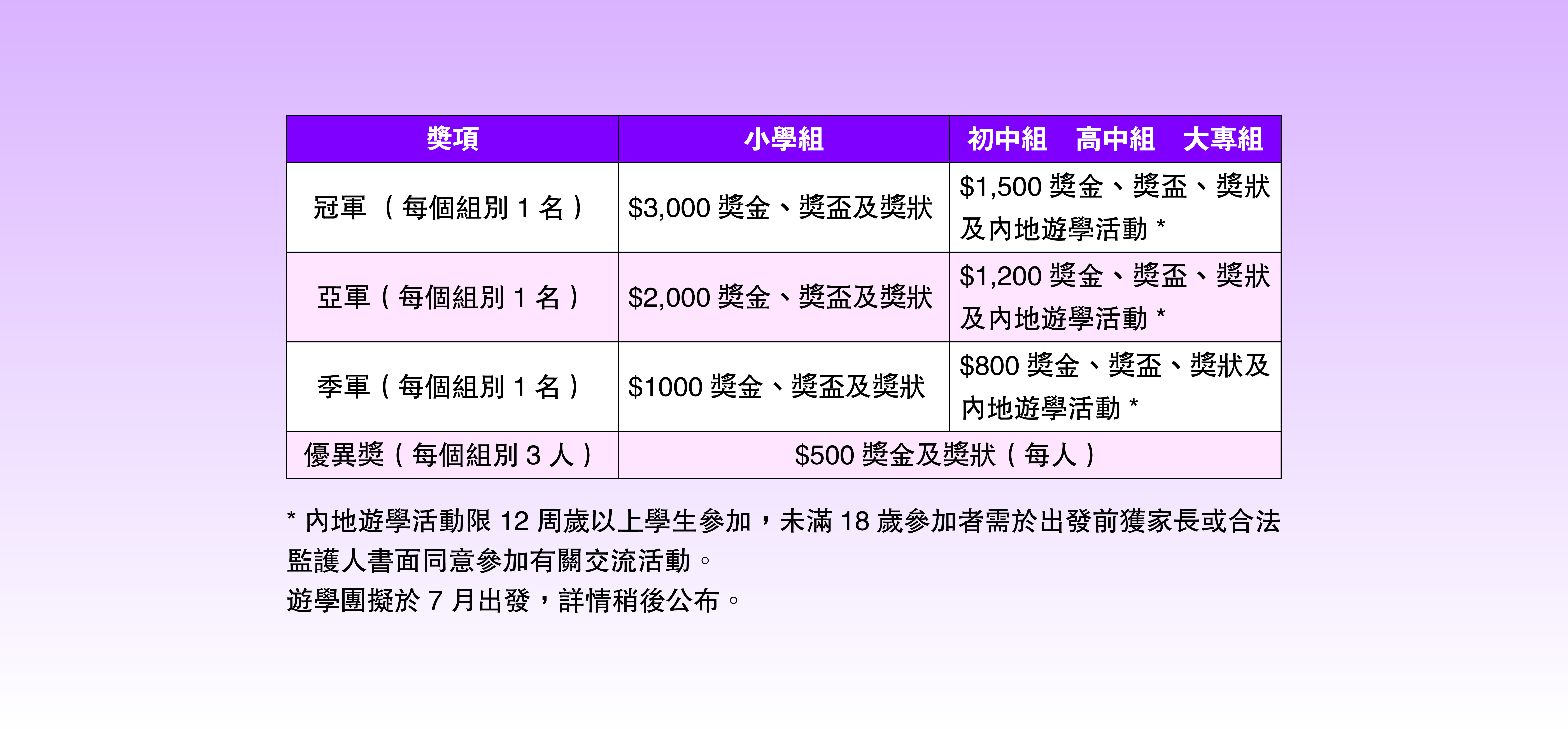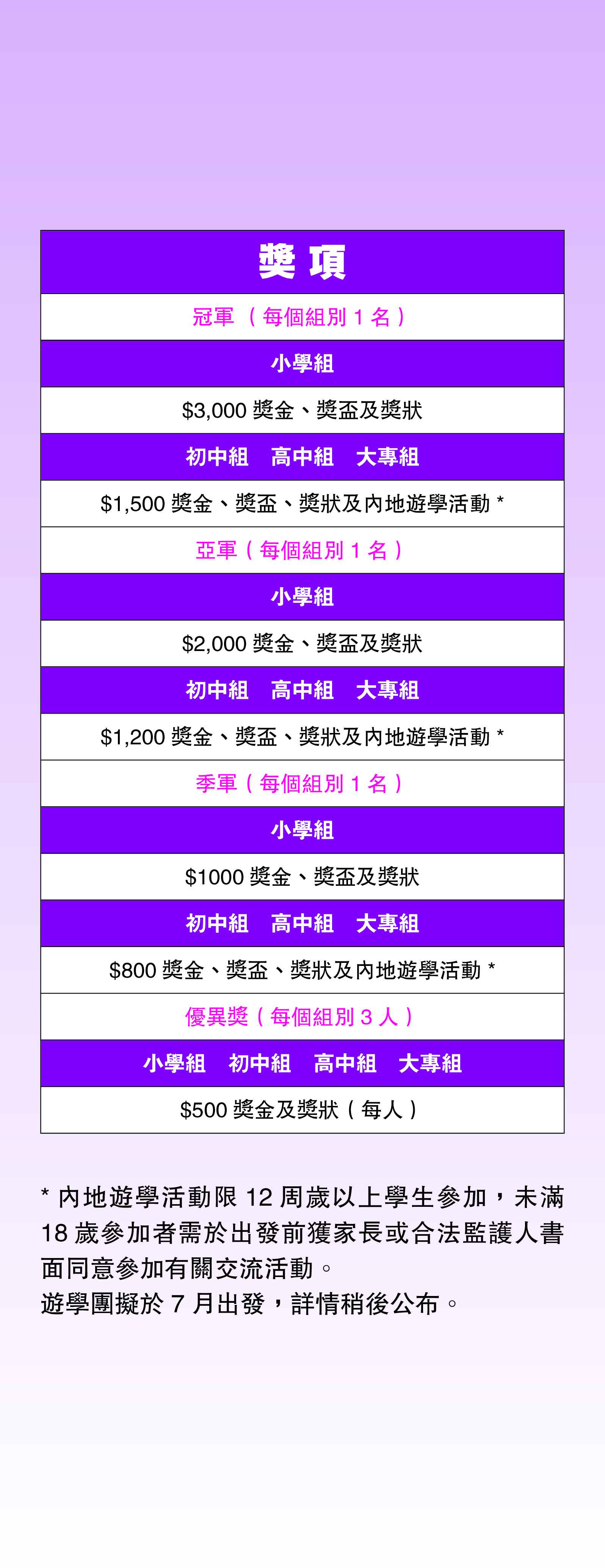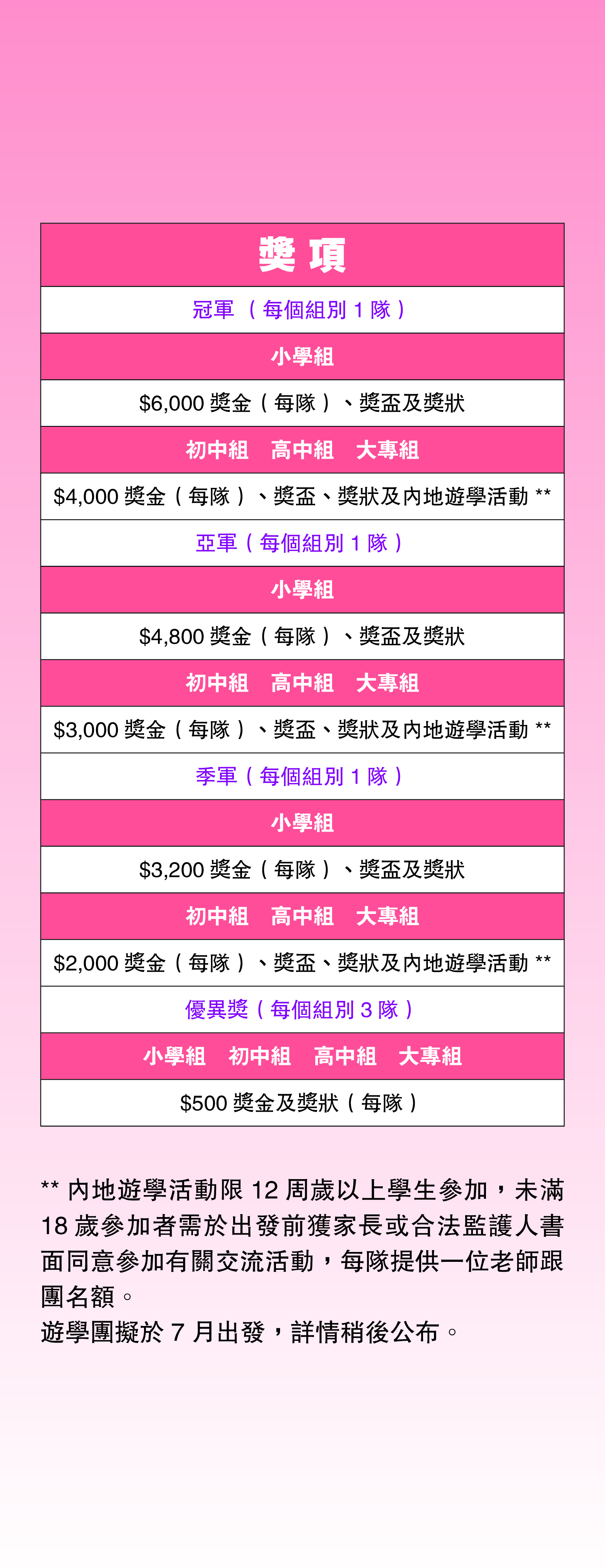 初中組:於2025-2026年度在本港就讀之全日制中一至中三學生